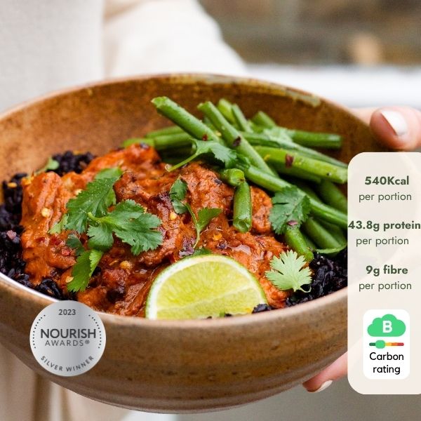 A slow cooked fragrant classic, our free range chicken tikka is made with tender pieces of free range chicken breast. Gluten and dairy free, it is served with black rice, green beans and a rich tikka sauce, providing a good source of protein, fibre, as well as being is low in fat. This meal supports immune function, energy and is a great healthy lunch or dinner option.