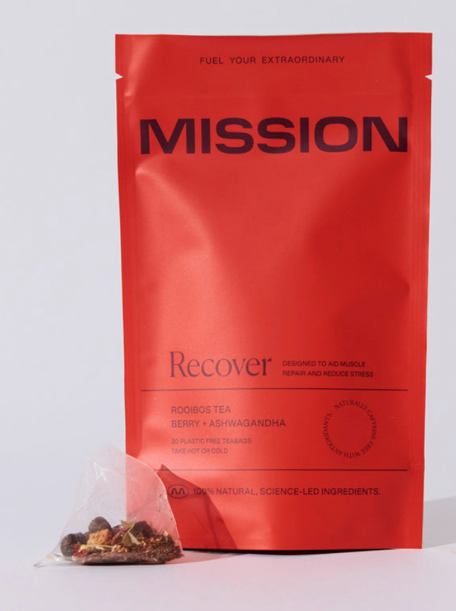 A caffeine-free Rooibos tea with berry + Ashwagandha. Our ingredients can protect tissue from injuries and support relaxation. Take hot or cold post workout or at any time of day.