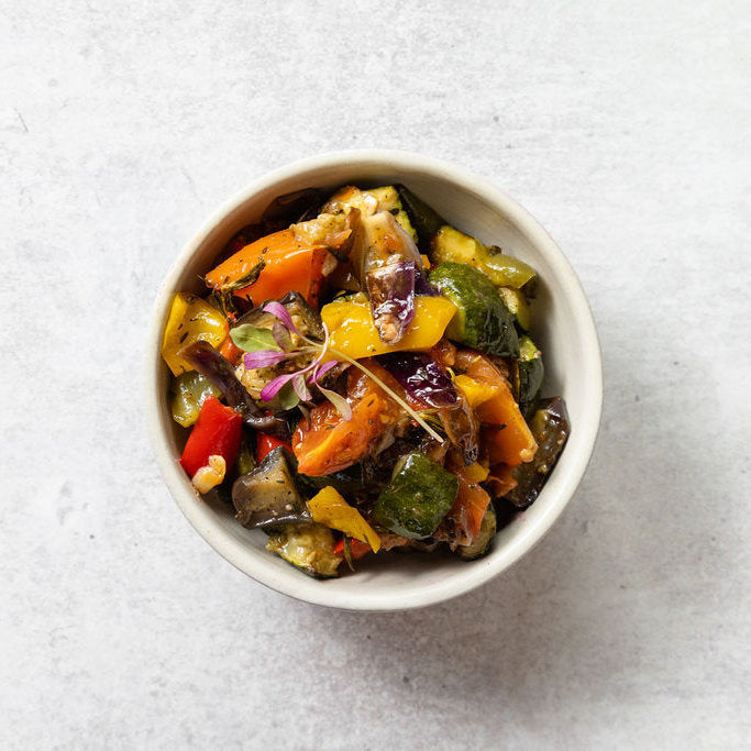 Rainbow Ratatouille (100%) (Chopped Tomatoes, Courgettes, Aubergines, Tomatoes, Onion, Yellow Peppers, Red Peppers, Avocado Oil and Extra Light Olive Oil (Avocado Oil (50%), Extra Light Olive Oil (50%)), Garlic, Basil, Oregano, Thyme, Sea Salt)